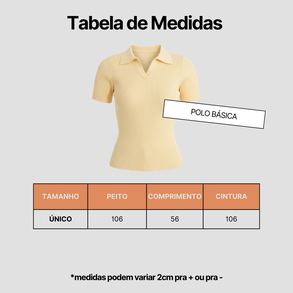 Polo Básica: a escolha certa para quem quer arrasar no casual ou no despojado! Feita em tecido Ribana (50% algodão, 47% poliéster e 3% elastano). Seja elegante ou descontraído, esta peça te salva em qualquer ocasião.
