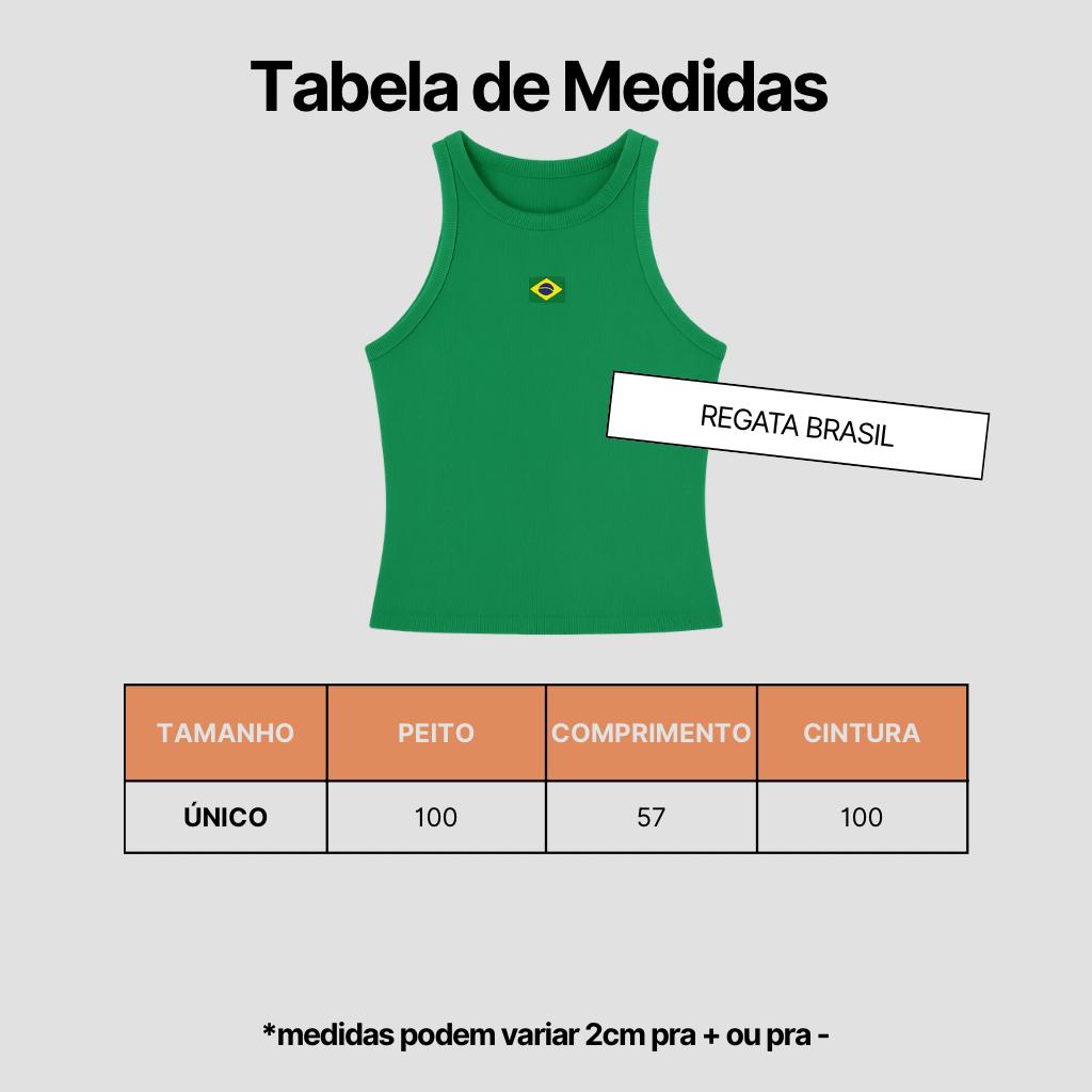 Blusa feminina estilo regata justa, confeccionada em tecido canelado com excelente elasticidade. Possui modelagem slim e detalhe frontal com a bandeira do Brasil, trazendo um toque patriota ao look. Confortável, moderna e ideal para compor produções casuais com estilo.
