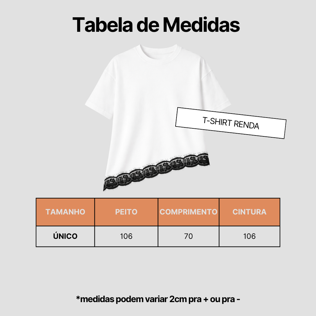 Descubra a sofisticação da T-Shirt Renda! Confeccionada em malha 100% algodão, proporciona conforto absoluto e toque macio. O detalhe assimétrico, enriquecido pela renda delicada, confere um charme especial e único à peça. Ideal para compor looks elegantes e modernos, é perfeita para quem valoriza estilo e exclusividade no guarda-roupa.